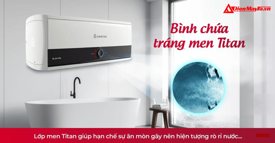 Bình nóng lạnh Ariston 20l ngang SL3 20RS bình chứa được tráng men Titan đảm bảo hiệu suất hoạt động tối đa, giữ nước nóng lâu hơn, chống ăn mòn giúp giảm thiểu tối đa hiện tượng rò nước, nâng cao tuổi thọ sử dụng.