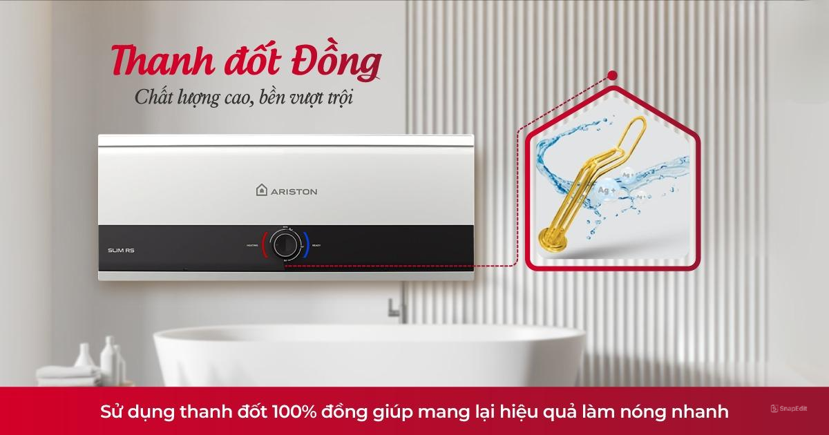 Thanh đốt 100% bằng đồng với độ bền vượt trội, làm nóng nhanh và ổn định, đồng thời chống bám cặn đem lại nguồn nước sạch hơn, bảo vệ sức khỏe gia đình bạn.