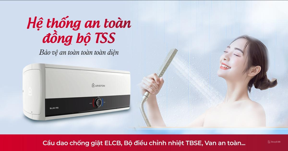 Bình nóng lạnh Ariston Slim2 20 RS đựoc trang bị hệ thống an toàn đồng bộ TSS tích hợp ELCB chống giật, tự động ngắt điện khi có sự cố, đảm bảo an toàn tuyệt đối khi sử dụng.