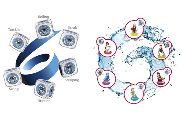 Công nghệ 6 Motion bao gồm các thao tác: Tumbling, Scub, Filtration, Rolling, Stepping, Swing.