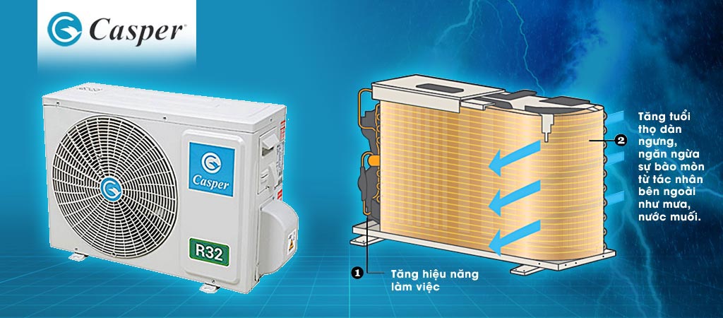 Máy điều hòa Casper 12000 BTU inverter QC-12IS36 dàn tản nhiệt làm bằng đồng và được mạ vàng mang lại cho người tiêu dùng những lợi ích vượt trội: