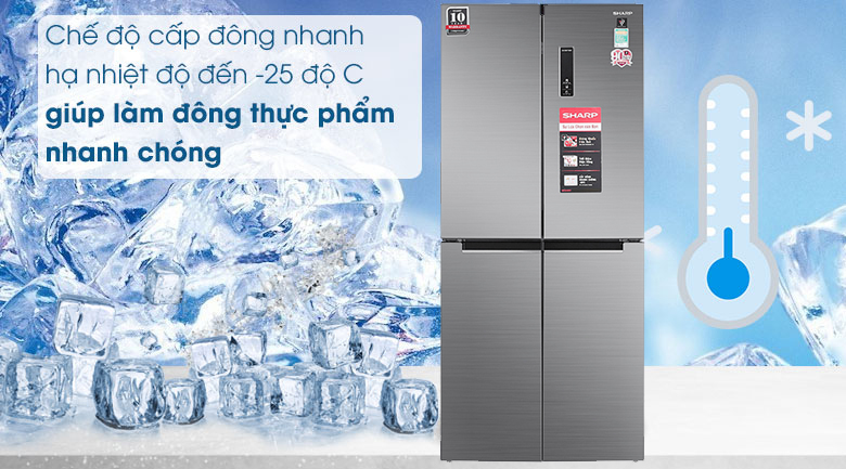 Ngoài ra tủ lạnh Sharp 2 cánh SJ-SBX440V-SL còn có chế độ express freezing khi được kích hoạt sẽ giảm nhiệt ngăn đông xuống thấp -24 độ C giúp việc cấp đông và làm đá diễn ra nhanh hơn. Hay với hệ thống làm lạnh đa chiều sẽ giúp thức ăn được dự trữ lâu dài, không hư hỏng.