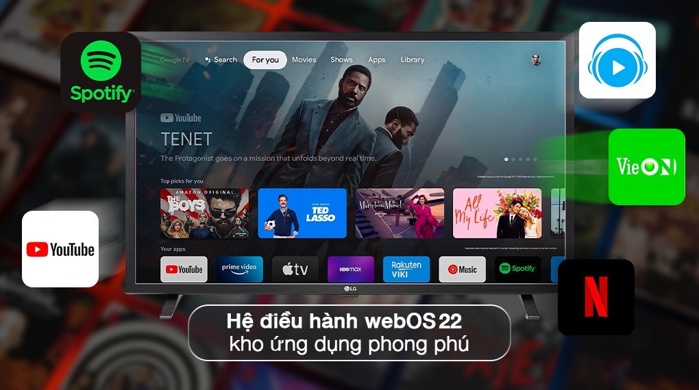 - Smart tivi LG trang bị hệ điều hành webOS 22 có giao diện trực quan, các thẻ ứng dụng hiển thị trong ô bo góc gọn đẹp, dễ dàng cho bạn tìm kiếm và truy cập.