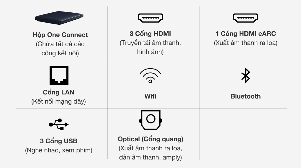 | Cổng xuất âm thanh: 1 cổng Optical (Digital Audio), 1 cổng eARC (ARC) |